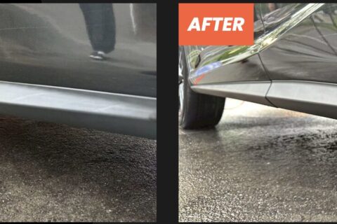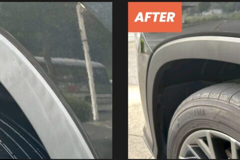 ビフォーアフターをご覧の通り、ツヤと深みのある黒さが復元され、車全体の印象もグッと引き締まります。